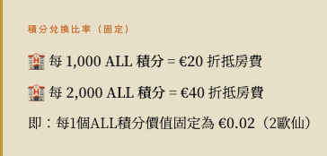 由於積分以歐元計價,換算成港元或加元時的實際折抵金額會隨匯率輕微浮動,但整體而言這是一個相當透明、可預測的計劃——非常適合計劃型的積分玩家。